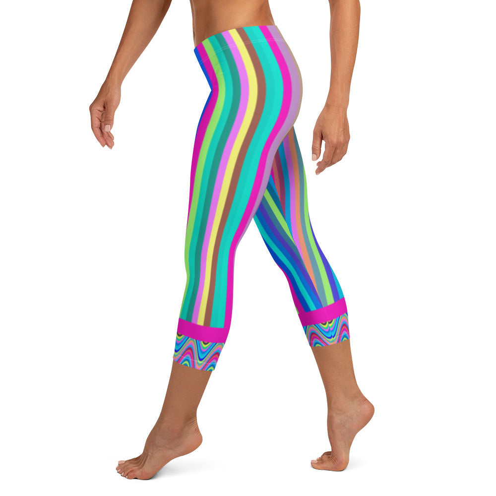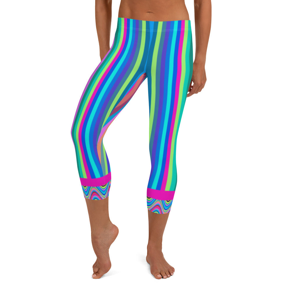 GET A MASSIVE DISCOUNT ON THESE SUPER GORGEOUS CAPRI LENGTH YOGA-STYLE LEGGINGS IN COLOURFUL FUN STRIPES!