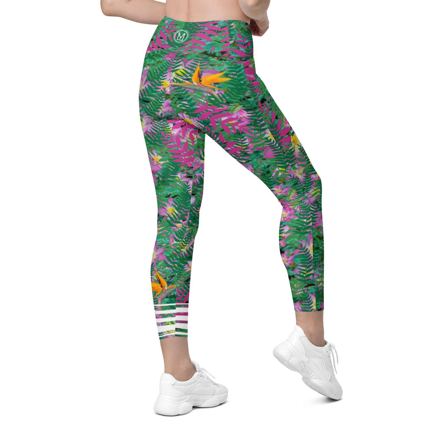 These leggings feature a flattering high-waisted cut, are exceptionally comfortable, and come with two practical side pockets. These stylish leggings are perfect for running, walking, yoga, gym, dance, pilates or for everyday wear around town.