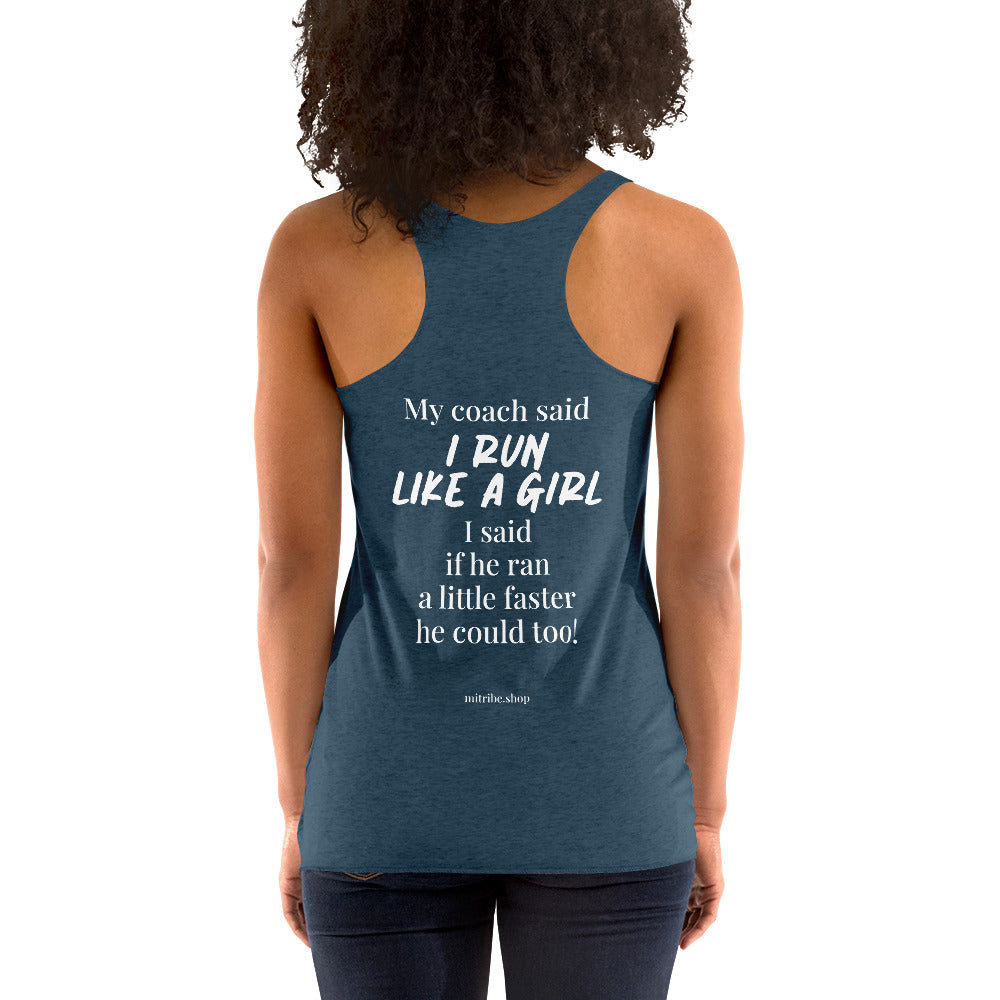 This racerback tank is soft, lightweight, and form-fitting with a flattering cut and raw edge seams for an edgy touch made from combination of ring spun cotton, polyester & rayon for wicking.